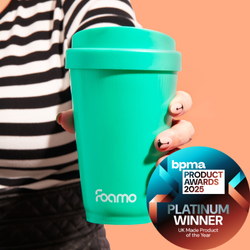 Made from 70% plant-based materials, dishwasher safe, and fully recyclable at the end of its (epic) life, FOAMO is designed for maximum impact with minimal footprint. Its innovative foaming technology reduces plastic use by 50%,giving it a carbon footprint up to 20x smaller than standard reusable cups. Proudly manufactured in the UK using energy-efficient, renewable-powered machinery, FOAMO blends clever design, sustainable credentials, and contemporary style. And when it’s time to say goodbye? Skip the Viking funeral (unless that’s your thing) and simply toss FOAMO into household recycling. Lightweight, planet-friendly, and seriously good-looking — FOAMO is the reusable cup with brains, beauty, and sustainable swagger.